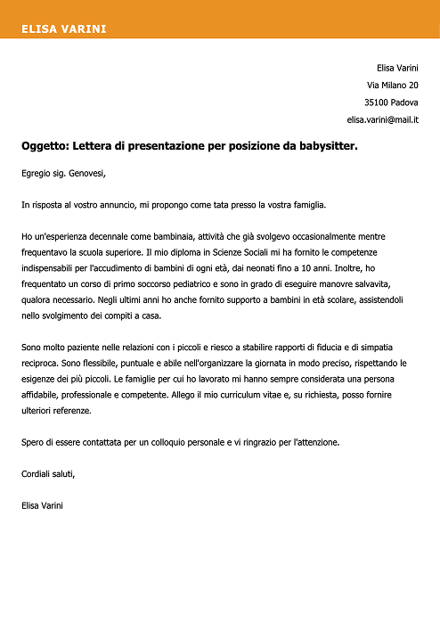In generale, per scrivere una lettera di presentazione efficace per babysitter, è importante:
